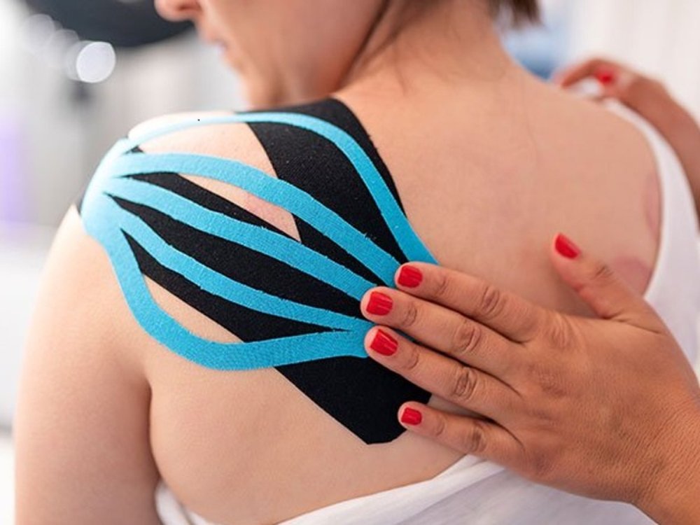 The application of specialized elastic tape (Kinesio Tape) or rigid tape to the skin.